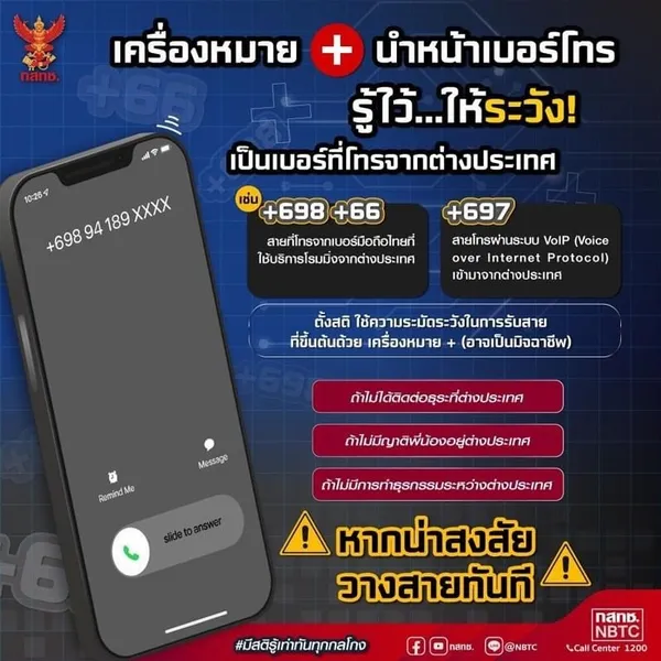 คณะกรรมการกิจการกระจายเสียง กิจการโทรทัศน์ และกิจการโทรคมนาคมแห่งชาติ (กสทช.) ยกระดับการเฝ้าระวัง หลังพบมิจฉาชีพกลับมาใช้มุกเดิมแต่ได้ผลบ่อย โดยเฉพาะสายจากต่างประเทศในการหลอกลวงประชาชน