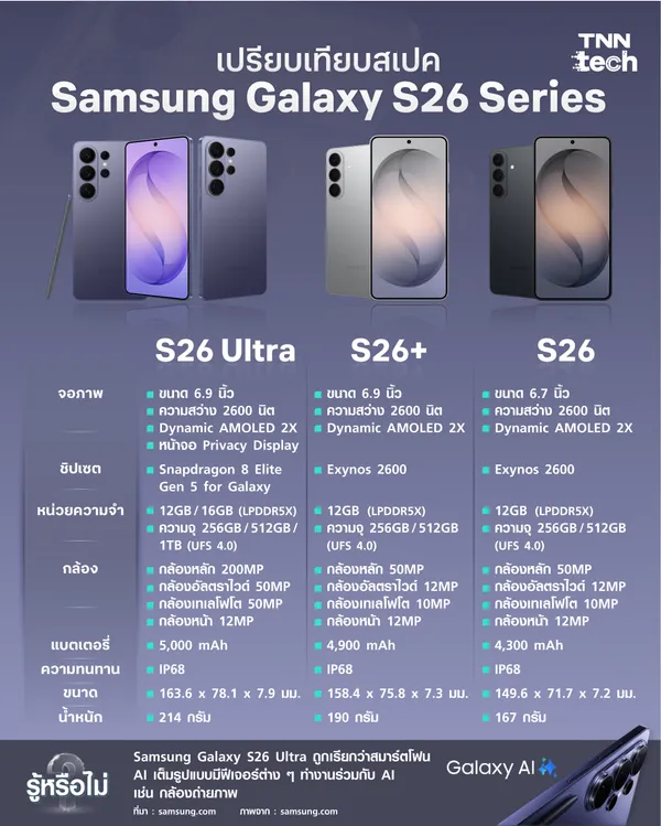 - เปิดตัว Samsung Galaxy S26 Ultra สมาร์ตโฟน AI รุ่นเรือธงใหม่ล่าสุด
