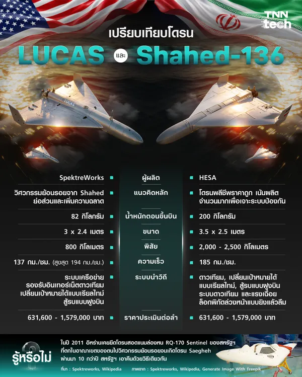 ในช่วงไม่กี่ปีที่ผ่านมา โดรนโจมตีแบบพลีชีพ หรือที่เรียกว่า Loitering Munition ได้กลายเป็นหนึ่งในอาวุธสำคัญของสงครามยุคใหม่ เนื่องจากมีต้นทุนต่ำ ใช้งานง่าย และสามารถโจมตีเป้าหมายได้อย่างแม่นยำ หนึ่งในโดรนที่ถูกพูดถึงมากที่สุดคือ Shahed-136 ของอิหร่าน ซึ่งถูกใช้งานอย่างแพร่หลายในหลายสมรภูมิ ขณะที่สหรัฐอเมริกาได้พัฒนาโดรนรุ่นใหม่ชื่อ LUCAS เพื่อใช้รับมือภัยคุกคามประเภทเดียวกัน โดยมีแนวคิดด้านวิศวกรรมและยุทธวิธีที่แตกต่างกันอย่างชัดเจน