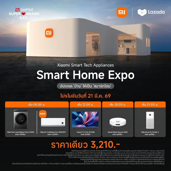 เสียวหมี่ ผู้นำด้านนวัตกรรมและเทคโนโลยีระดับโลก กลับมาพร้อมความยิ่งใหญ่อีกครั้ง กับงาน Xiaomi Smart Home Expo - อัปเกรด 'บ้าน' ให้เป็น 'สมาร์ทโฮม' ที่พร้อมนำเสนอนวัตกรรมอันล้ำสมัยที่จะมาเปลี่ยนบ้านของคุณให้ชาญฉลาดเพียงปลายนิ้วสัมผัส พร้อมเปิดตัวผลิตภัณฑ์ใหม่ต้อนรับซัมเมอร์ อาทิ เครื่องปรับอากาศ Mijia Air Conditioner Eco EGAT Label No.5 with 1 Star, ทีวีอัจฉริยะ Xiaomi TV S Mini LED 2026, หุ่นยนต์ดูดฝุ่นอัจฉริยะ Xiaomi Robot Vacuum H50 Pro, Xiaomi Robot Vacuum H50 และผลิตภัณฑ์อื่นๆ อีกมากมาย โดยภายในงานเสียวหมี่ยังมีกิจกรรมสุดพิเศษและดีลเด็ดที่นำมาแจกผู้ชมอีกไม่อั้น นิทรรศการจะจัดขึ้นระหว่างวันที่ 20 มีนาคม - 5 เมษายน 2569 ตั้งแต่เวลา 10:00 น. เป็นต้นไป ณ บริเวณเมกาพลาซ่า ศูนย์การค้าเมกาบางนา