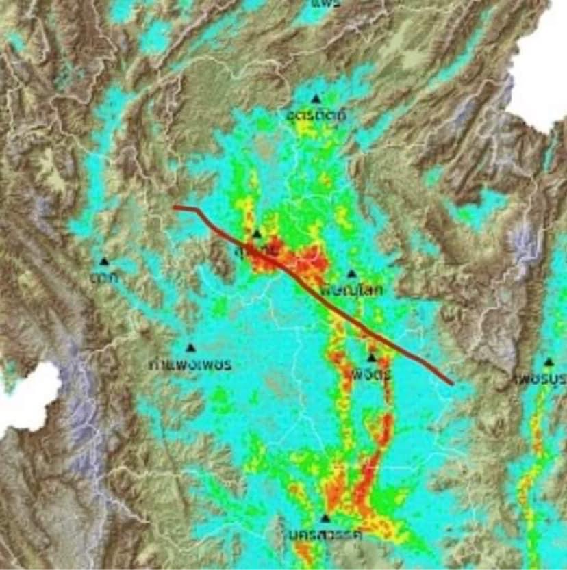ศ.ดร.สันติ มองเหตุการณ์ครั้งนี้เป็นเหมือนการกวักมือเรียกของรอยเลื่อนที่จะบอกว่าฉันมีอยู่ ฉันอยู่ตรงนี้ ซึ่ง หากมาดูภูมิประเทศในรายละเอียด จะพบว่ามีความเป็นไปได้อย่างสูงที่จะมีแนวรอยเลื่อน ที่เราไม่เคยพูดถึงวางตัวอยู่ในแนวตะวันตกเฉียงเหนือ-ตะวันออกเฉียงใต้ พาดผ่านลงมาจนถึงจุดศูนย์กลางแผ่นดินไหว 4.5 นี้ โดยหลักฐานที่นำมาประกอบในการกำหนดแนวรอยเลื่อนดังกล่าว คือ