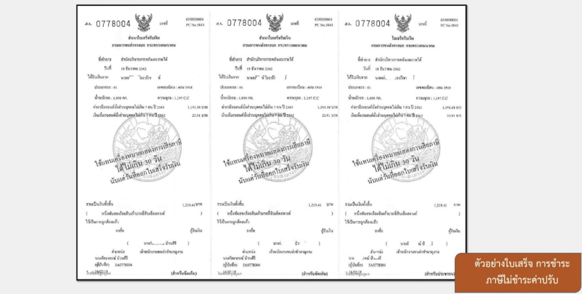 แต่หากประชาชนยังไม่ชำระค่าปรับ ภายใน 30 วัน แล้วนำป้ายชั่วคราวไปใช้แทน ถือว่าเป็นการขับรถโดยไม่มีป้ายภาษี มีโทษตาม พ.ร.บ.รถยนต์ มาตรา 11 ปรับไม่เกิน 2,000 บาท และถูกตัดคะแนนความประพฤติในการขับรถ 1 คะแนน