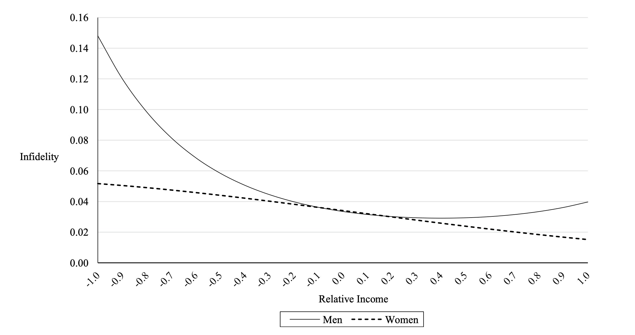 จากงานศึกษา Her Support, His Support: Money, Masculinity, and Marital Infidelity ได้ชี้ให้เห็นว่า หากผู้ชายมีภาระที่ต้องพึ่งพาทางการเงินจากฝ่ายหญิงมากเท่าไหร่ ผู้ชายก็จะยิ่งนอกใจมากเท่านั้น