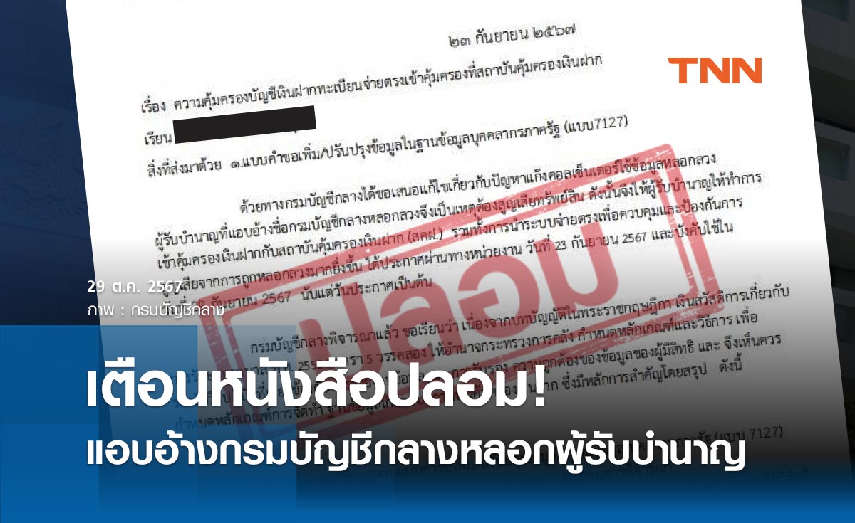 - เตือนหนังสือปลอม! แอบอ้างชื่อกรมบัญชีกลางหลอกลวงผู้รับบำนาญ