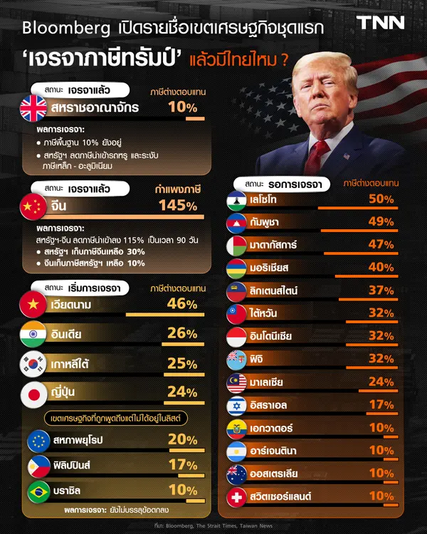 นี่เป็นครั้งแรกที่ทีมเจรจาสหรัฐฯ กล่าวถึงความคืบหน้าว่า มีการเริ่มพูดคุยกับประเทศไทย หลังก่อนหน้านี้ บลูมเบิร์กออกมาเปิดเผยลิสต์รายชื่อเขตเศรษฐกิจ ประมาณ 20 แห่ง ว่าเป็น Priority List หรือกลุ่มแรกที่ทีมเจรจาทรัมป์จะให้ความสำคัญในการเจรจาเป็นลำดับแรก ๆ