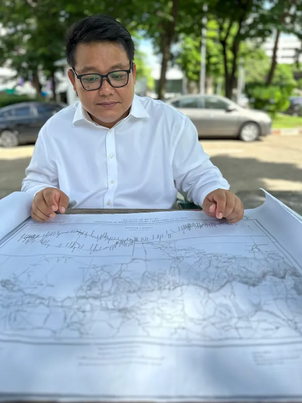 ลัม เจีย เมื่อ 14 ปีก่อน ขณะอธิบายหลักฐานทางเขตแดนที่กัมพูชา บันทึกวาจาหลักเขตที่ 23 ค.ศ.1908