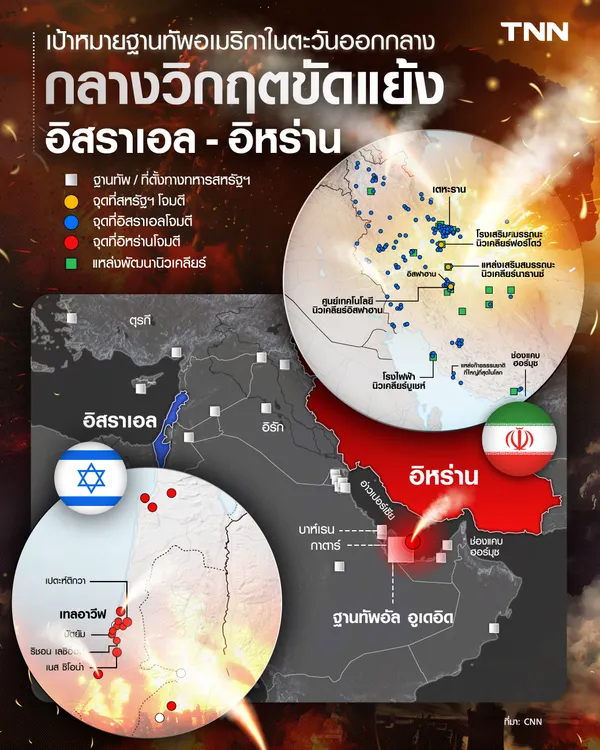 แต่หากดูแผนที่จุดโจมตีของอิหร่านและอิสราเอล ที่ดำเนินมานานกว่า 10 วัน จะเห็นว่า อิหร่านได้รับความเสียหายจากการโจมตีที่ค่อนข้างมาก และกระจัดกระจาย รวมถึงโดนสหรัฐฯ สมทบการโจมตีแหล่งพัฒนานิวเคลียร์อีก 3 แห่ง