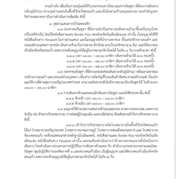 นอกจากนี้ ยังมีการเปิดช่วงเวลาอนุโลมพิเศษให้เฉพาะนักเรียนและนักศึกษาชาวกัมพูชาเดินทางกลับบ้านในช่วงเช้า 06.00–08.00 น. และช่วงเย็น 17.00–19.00 น. โดยต้องแสดงหลักฐานระบุสถานะอย่างชัดเจน และไม่อนุญาตให้มีบุคคลทั่วไปแฝงตัวเดินทางร่วมขบวน