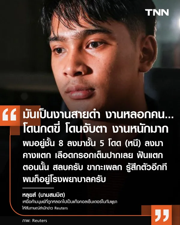 "หลุยส์" เหยื่อค้ามนุษย์ชายไทย ที่ไม่ประสงค์ออกนามจริง เปิดว่า ถูกบังคับให้ล่อลวงคนไทย ชวนลงทุน ถ้าเหยื่อไม่ติด ก็ไปต่อกับเหยื่อรายต่อ ๆ ไป ที่สำคัญ แก๊งมิจฉาชีพให้กำลัง ทุบตี ช็อตไฟฟ้า เพื่อบังคับให้พวกเขาทำงาน