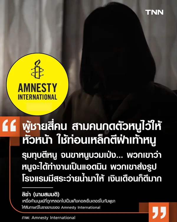 "เขาบอกว่าจะให้ทำงานฝ่ายธุรการ ส่งรูปโรงแรมมีสระว่ายน้ำมาให้ เงินเดือนก็ดีมาก” แต่ท้ายสุด เธอถูกพาเข้ากัมพูชา ไปทำงานหลอกผู้คน นาน 11 เดือน โดยมีคนจับตา และทุบตีเพื่อบังคับให้ทำงาน
