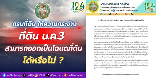 กรมที่ดินได้ชี้แจงเรื่องนี้อย่างเป็นทางการ โดยระบุว่า สามารถออกเป็นโฉนดได้ หากเข้าเงื่อนไขที่กฎหมายกำหนด ซึ่งถือเป็นข่าวดีสำหรับผู้ถือ น.ค.3 หลายหมื่นรายทั่วประเทศ