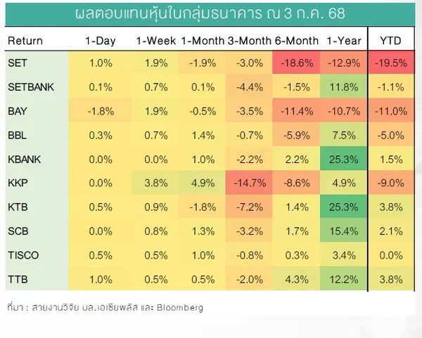 โดยปัจจัยแวดล้อมที่เกิดขึ้นจะส่งผลกระทบต่อผลประกอบการของธนาคารพาณิชย์ในไตรมาส 2/68 มากน้อยแค่ไหน และแนวโน้มธุรกิจธนาคารพาณิชย์ในช่วงที่เหลือของปีจะเป็นอย่างไร หุ้นแบงก์ตัวไหนที่ยังน่าลงทุนจ่ายปันผลแจ่ม ในวันนี้ TNN Online พาไปไขคำตอบจากกูรูกันค่ะ