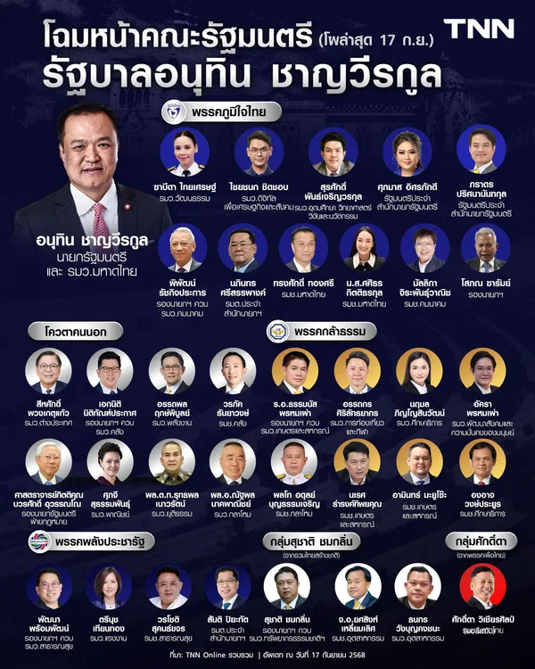 - ภายในวันที่ 16–17 กันยายน 2568 รายชื่อ ครม. ครบ 36 คน ผ่านการตรวจสอบทั้งหมด