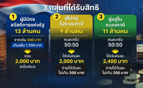 1. ผู้มีบัตรสวัสดิการแห่งรัฐ จำนวน 13 ล้านคน