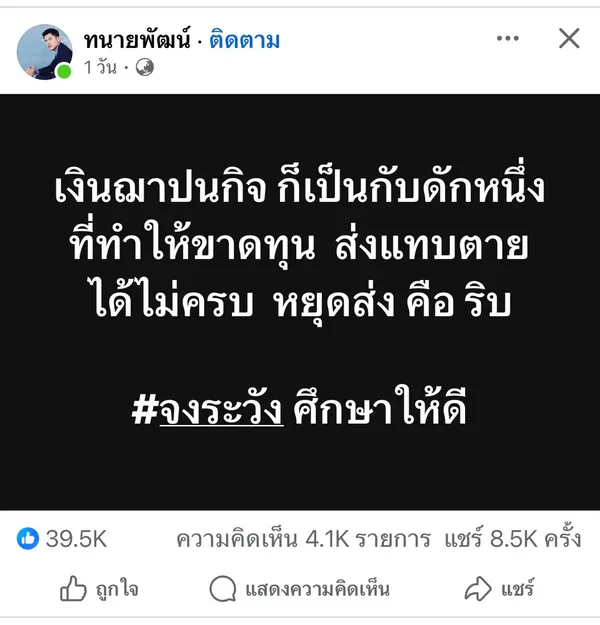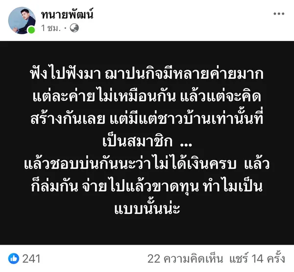 “เงินฌาปนกิจเห็นว่ากรรมการชอบเอาเงินไปใช้เองจริงหรือ” “เก็บเงินได้เท่าไร เคยชี้แจงไหม” และ “ถ้ากลุ่มล้ม เงินที่จ่ายไปคืออะไร” คือชุดคำถามจากโพสต์ของทนายพัฒน์ที่ถูกแชร์หลายพันครั้ง ภายในเวลาไม่นานก็กลายเป็นประเด็นสาธารณะ เพราะแตะจุดเจ็บของครอบครัวรายได้น้อยที่ฝากความหวังไว้กับเงินสงเคราะห์เมื่อเกิดเหตุไม่คาดฝัน