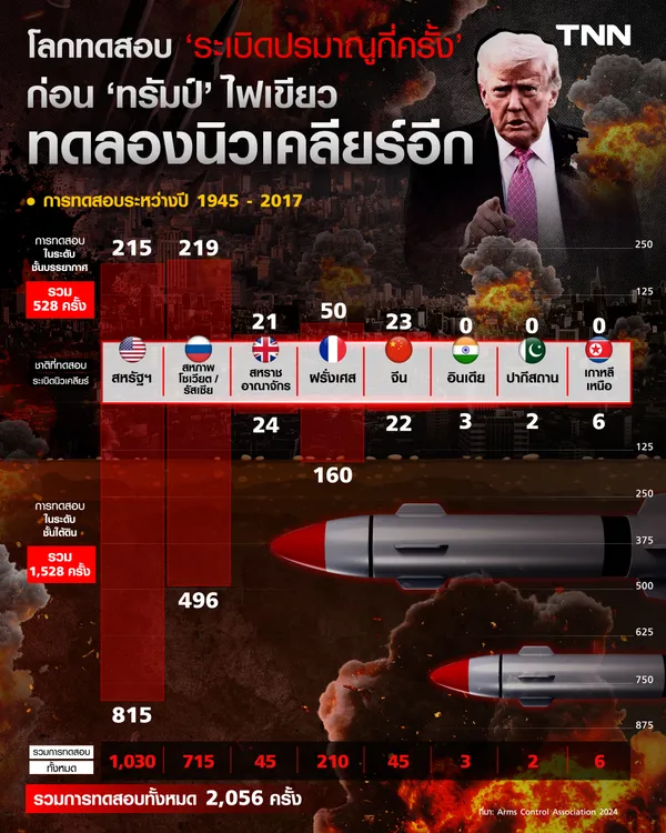 ข่าวใหญ่ของโลกช่วงสัปดาห์ที่ผ่านมา คือ การที่ประธานาธิบดีโดนัลด์ ทรัมป์ ของสหรัฐฯ ประกาศสั่งให้กระทรวงการสงครามสหรัฐฯ หรือก็คือกระทรวงกลาโหมในชื่อเดิม ดำเนินการทดสอบอาวุธนิวเคลียร์อีกครั้ง ด้วยเหตุผลว่า ประเทศอื่นก็ทำกัน หากสหรัฐฯ ไม่ทำจะตกขบวน