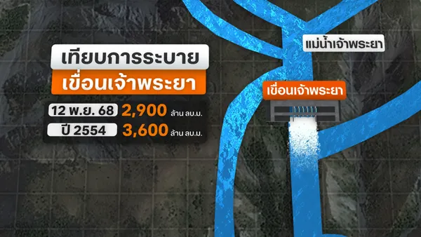 ทั้งนี้ปริมาณน้ำที่ระบายจากเขื่อนเจ้าพระยาปี 2554 ซึ่งน้ำท่วมใหญ่อยู่ที่ 3,600 ลูกบาศก์เมตร/วินาที ซึ่งมีความแตกต่างกันอย่างสิ้นเชิง