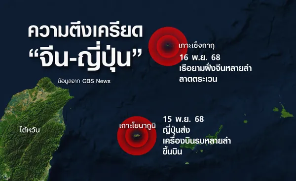 ขณะนี้ จีนและญี่ปุ่นกำลังขัดแย้งกันอย่างหนักมานาน 11 วันแล้ว ชนวนเหตุมาจากคำพูดของนายกรัฐมนตรีรัฐมนตรีคนใหม่สายอนุรักษนิยมขวาจัดของญี่ปุ่น ซานาเอะ ทากาอิจิ ได้กล่าวเมื่อวันที่ 7 พฤศจิกายนที่ผ่านมาว่า ญี่ปุ่นอาจแทรกแซงทางทหาร ถ้าหากจีนโจมตีไต้หวัน เพราะญี่ปุ่นจะถือว่าเป็นการคุกคามความอยู่รอดของญี่ปุ่น
