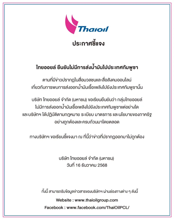 นับแต่สถานการณ์ชายแดนไทย-กัมพูชา ปะทุขึ้นเมื่อช่วงกลางปี ไทยยุติการส่งออกน้ำมันไปกัมพูชา ตั้งแต่เดือนกรกฎาคม ที่ส่วนใหญ่จะผ่านด่านจังหวัดตราด สระแก้ว จันทบุรี และสุรินทร์
