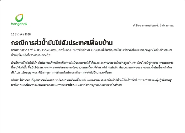 ด้านบริษัทน้ำมันไทยทุกแห่ง ที่ปรากฏภาพรถบรรทุกน้ำมันจอดรออยู่ด่านช่องเม็ก ก็ออกมาชี้แจงว่า ส่งน้ำมันไปลาว ไม่ได้ส่งไปกัมพูชาแต่อย่างใด รวมถึงไทยออยล์ และบางจาก ด้วย