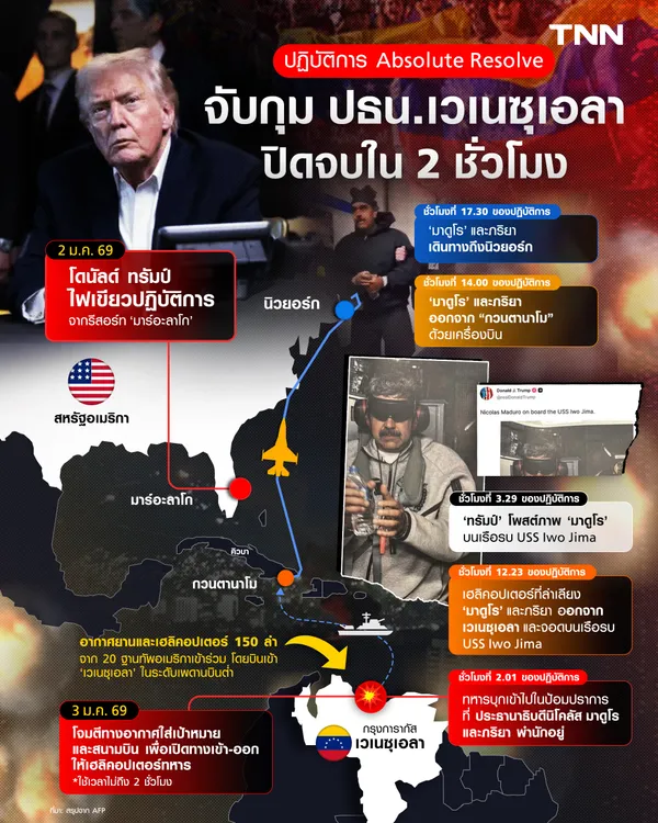 เริ่มที่สรุปเหตุการณ์ 90 นาที ชี้เป็นของ นิโคลัส มาดูโร จาก "ประธานาธิบดีเวเนซูเอลา" สู่ "ผู้ก่อการร้ายยาเสพติด"