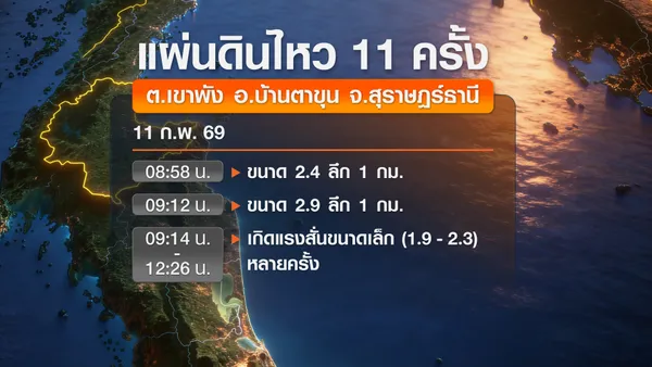 เหตุแผ่นดินไหวในพื้นที่ตำบลเขาพัง อ.บ้านตาขุน เหตุเกิดรวม 9 ครั้ง