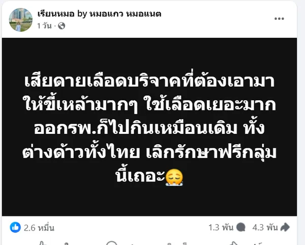 จุดที่ทำให้เรื่องนี้กลายเป็นดราม่า ไม่ได้อยู่ที่การรักษาผู้ป่วย แต่เป็นความรู้สึกว่า เลือดซึ่งมีจำกัด กำลังถูกใช้ไปกับผู้ป่วยบางกลุ่มในปริมาณมาก และเกิดซ้ำบ่อย