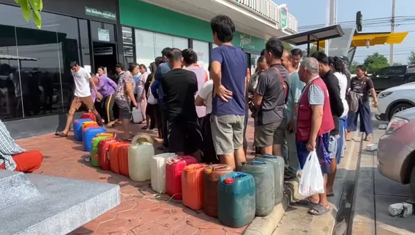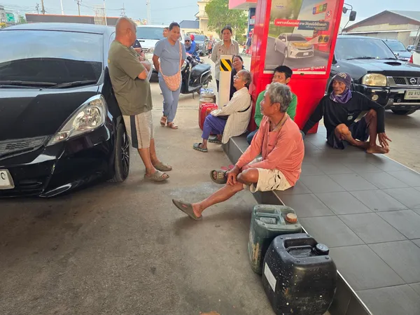 เมื่อวันที่ 17 มีนาคม 2569 ที่สถานีบริการน้ำมันแห่งหนึ่ง ตำบลในเมือง อำเภอเมือง จังหวัดกำแพงเพชร มีประชาชนจำนวนมากยืนและนั่งรออยู่บริเวณหน้าสถานีบริการน้ำมัน เตรียมพร้อมนำถังน้ำมันสำรองหลากหลายขนาด บรรทุกใส่ท้ายรถกระบะหรือหิ้วมาด้วยตนเอง เพื่อเติมน้ำมันกลับไปใช้ในการเกษตรหรือสำรองไว้ใช้ในยามจำเป็น ชาวบ้านที่รอต่างมองที่หัวจ่ายน้ำมันลุ้นเมื่อไรจะถึงคิว เนื่องจากปริมาณน้ำมันที่มีจำกัด