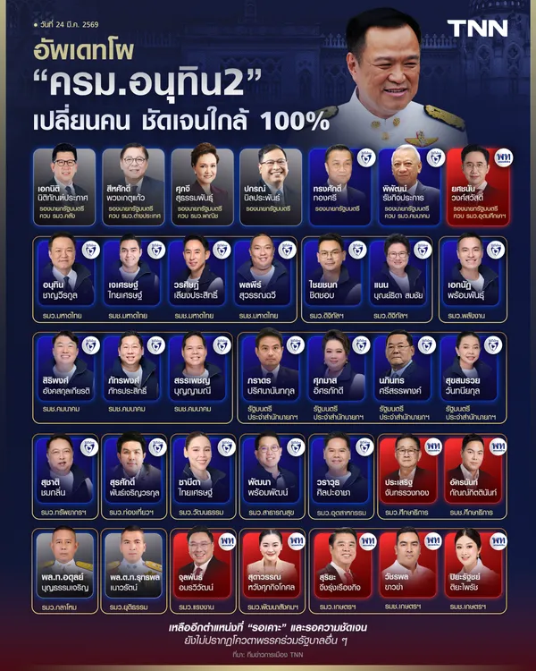 รายชื่อคณะรัฐมนตรี “อนุทิน 2” ทั้ง 35 คน