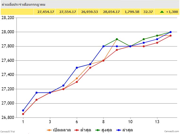 หากจะสังเกตราคา ทองคำ ในประเทศ จะพบว่าราคาทองคำปรับตัวลงมาตั้งแต่ต้นปี โดยในเดือนมกราคม - มีนาคม 2564 ราคาทองคำปรับลดลงมาอย่างต่อเนื่องและผันผวน แต่เมื่อมาถึงเดือนเมษายนและพฤษภาคม จะเห็นว่าราคาทองปรับขึ้นมาอย่างเห็นได้ชัด ก่อนที่ปรับลงในเดือน มิถุนายน และเริ่มปรับตัวขึ้นอีกครั้งตั้งแต่ต้นเดือน ก.ค. ที่ผ่านมา ล่าสุดปรับขึ้นมา 1,300 บาท แม้ราคาระหว่างวันอาจจะมีผันผวนบ้าง ตามปัจจัยสำคัญทั้งการประชุมเฟด สถานการณ์เศรษฐกิจสหรัฐ และค่าเงินบาท