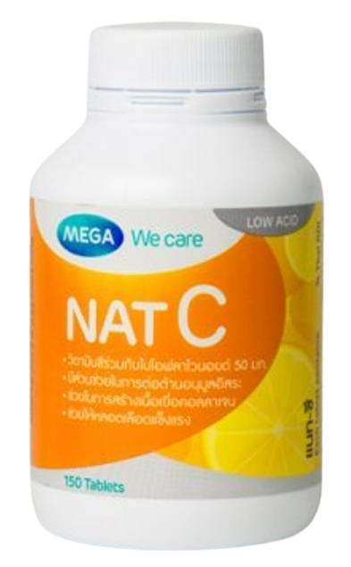 สำหรับวิตามินซีตัวถัดมา เชื่อว่าหลายๆคนคงเคยได้ยินมาบ้าง กับ Nat C วิตามินซีคุณภาพจาก MEGA We Care ตัวนี้หนึ่งเม็ดจะให้วิตามินซี 1000 มก. มีผงสกัดแห้งจากโรสฮิพ 62.5 มก. และอื่นๆอีกมากมาย กินแล้วไม่ระคายเคืองทางเดินอาหาร ใครที่หาวิตามินซีดีๆอยู่ ช่วยทั้งเรื่องผิว และเรื่องภูมิคุ้มกัน ตัวนี้ตอบโจทย์