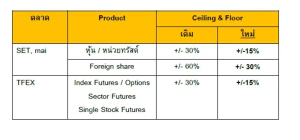 1. ปรับ Ceiling & Floor สำหรับทั้ง SET, mai และ TFEX*