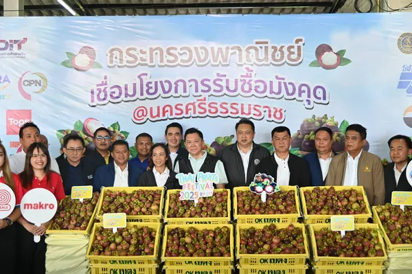 นายกรนิจ โนนจุ้ย รองอธิบดีกรมการค้าภายใน เปิดเผยว่า ภายหลังจากการลงพื้นที่ของ นายจตุพร บุรุษพัฒน์ รัฐมนตรีว่าการกระทรวงพาณิชย์ และนายสุชาติ ชมกลิ่น รัฐมนตรีช่วยว่าการกระทรวงพาณิชย์ ในจังหวัดนครศรีธรรมราช เมื่อวันที่ 4 กรกฎาคม 2568 และได้จัดกิจกรรมเชื่อมโยงผลไม้ออกนอกแหล่งผลิต โดยนำผู้ประกอบการและห้างค้าส่ง-ค้าปลีกลงมารับซื้อผลผลิตโดยตรงจากเกษตรกร จากนั้นกรม ได้ร่วมกับสำนักงานพาณิชย์จังหวัดนครศรีธรรมราช ลงพื้นที่ติดตามการรับซื้อของผู้ประกอบการอย่างต่อเนื่อง พบว่า ล้งจากภาคตะวันออก ได้ลงมารับซื้อผลผลิตในภาคใต้อย่างเต็มที่แล้วภายหลังฤดูกาลภาคตะวันออกใกล้สิ้นสุดลง ส่งผลให้สภาวะการซื้อขายมังคุดในพื้นที่จังหวัดนครศรีธรรมราชมีความคึกคักมากขึ้น ประกอบกับห้างค้าส่ง-ค้าปลีกได้ลงมาซื้อผลผลิตในแหล่งผลิตอย่างต่อเนื่อง ส่งผลดีต่อเกษตรกรทำให้ราคาเริ่มขยับขึ้น จากเมื่ออาทิตย์ก่อนที่ราคามังคุดเบอร์รวมอยู่ที่ 10 - 11 บ./กก. ได้ปรับขึ้นมาอยู่ที่ 12 - 14 บ./กก. แล้วสำหรับการคาดการณ์ผลผลิตมังคุดในภาคใต้ มีปริมาณ 109,697 ตัน โดยเป็นผลผลิตของจังหวัดนครศรีธรรมราช ปริมาณ 40,063 ตัน โดยขณะนี้มังคุดของจ.นครศรีธรรมราช ได้เริ่มออกสู่ตลาดแล้วกว่า 50% เพื่อเป็นการรองรับผลผลิตดังกล่าว กระทรวงพาณิชย์ โดยกรมการค้าภายใน ได้มีแผนและมาตรการรองรับผลผลิตในส่วนของภาคใต้รวมกว่า 64,000 ตัน ผ่านมาตรการสำคัญ ไม่ว่าจะเป็นการเชื่อมโยงเข้าสู่ตลาดของผู้บริโภคโดยการรับซื้อจากบริษัทจดทะเบียนในตลาดหลักทรัพย์ (SET) ที่ตั้งเป้าการรับซื้อกว่า 6,000 ตัน รวมไปถึงธนาคารกรุงไทย ธนาคารไทยพาณิชย์ ธนาคารเพื่อการเกษตรและสหกรณ์การเกษตร (ธ.ก.ส.) ที่รับซื้อเพื่อการจัดกิจกรรมเพื่อสังคม(CSR) อีกทั้งมีการกิจกรรมรณรงค์บริโภคผลไม้ Thai fruit festival 2025 ณ ห้างซุปเปอร์ชีปทั่วภาคใต้ กว่า 2,000 ตัน และเชื่อมโยงมังคุดภาคใต้ผ่านห้างค้าปลีก-ส่ง ปริมาณ 6,000 ตัน และประสานผู้ส่งออกเร่งเข้ารับซื้อผลไม้ในพื้นที่ภาคใต้ ตั้งเป้ามังคุดนครศรีธรรมราช วันละ 300 ตัน รวมกว่า 15,000 ตัน เพิ่มศักยภาพและส่งเสริมสภาพคล่องให้ผู้รวบรวมรับซื้อผลไม้เพื่อส่งออก ทั้งทุเรียนและมังคุดปริมาณรวม 35,000 ตัน “ ตลอดช่วงเทศกาลมังคุดนี้ กรมการค้าภายใน ได้ ร่วมกับห้างส่ง-ค้าปลีกจัดกิจกรรมรณรงค์บริโภคในทุกสาขาทั่วประเทศประกอบด้วย บิ๊กซี แม็คโคร โลตัส โก-โฮลเซลล์ ท็อปเซ็นทรัล เดอะมอลล์ 7-Eleven รวมไปถึงห้างซูเปอร์ชีป ชมรมทายาทห้างค้าปลีก-ค้าส่งแห่งประเทศไทย ตลอดจนสมาคมการค้า ตลาดกลางค้าส่งสินค้าเกษตรไทย จำนวน 3 ตลาด และสมาคม