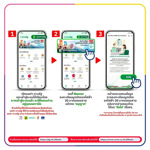 ขั้นตอนการลงทะเบียน “รถไฟฟ้า 20 บาทตลอดสาย” ผ่านแอปพลิเคชัน ทางรัฐ