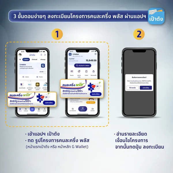 ลงทะเบียนรับสิทธิโครงการ คนละครึ่งพลัส