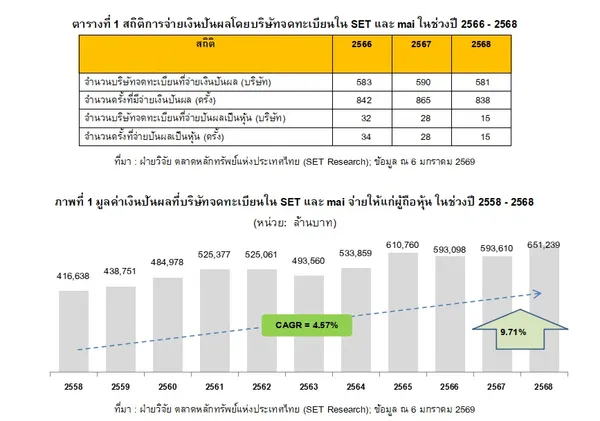 - ตลท. เผย ปี 2568 บริษัทจดทะเบียนไทยจ่ายเงินปันผล 651,239 ล้านบาท