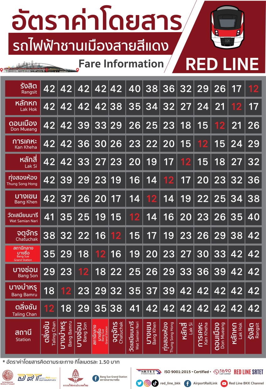 ล่าสุดเพจเฟซบุ๊ก Airport Rail Link โพสต์ประชาสัมพันธ์ อัตราค่าโดยสารรถไฟฟ้าสายสีแดงออกมาแล้ว ราคาเริ่มต้น 12-42 บาท อัตราค่าโดยสารคิดตามระยะทางกิโลเมตรละ 1.50 บาท ซี่งรายละเอียดราคาดูได้จากรูปด้านล่างนี้