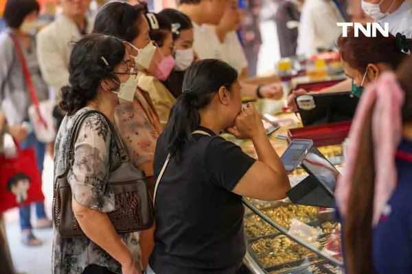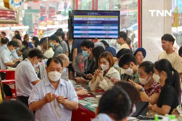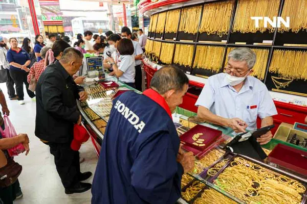 เมื่อเวลา 12.00 น. ประชาชนได้เดินทางมาเลือก ซื้อ-ขายทอง ที่ร้าน ฮั่วเซ่งเฮง ภายหลังเช้าวันนี้ ราคาทองคำพุ่งขึ้น 600 บาท เปรียบเทียบกับราคาปิดเมื่อวานนี้ ทองรูปพรรณขายออกที่บาทละ 47,700 บาท ตามข้อมูลล่าสุด จากเว็บไซต์ของสมาคมค้าทองคำ เมื่อเวลา 13.03 น. ที่ผ่านมา ทองคำแท่งในประเทศ ราคารับซื้ออยู่ที่บาทละ 47,100 บาท ขายออกบาทละ 47,200 บาท ตามประกาศครั้งที่ 16