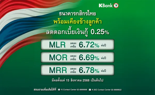นายจงรัก รัตนเพียร ผู้จัดการใหญ่ ธนาคารกสิกรไทย เปิดเผยว่าการปรับลดอัตราดอกเบี้ยในครั้งนี้สอดคล้องกับมติของคณะกรรมการนโยบายการเงิน (กนง.) ซึ่งได้มีมติเป็นเอกฉันท์ในการประชุมเมื่อวันที่ 13 สิงหาคม 2568 ให้ลดอัตราดอกเบี้ยนโยบายลงร้อยละ 0.25 เหลือร้อยละ 1.50 ต่อปี ตามภาวะเศรษฐกิจไทยที่แม้จะยังคงขยายตัวได้ใกล้เคียงกับที่ประเมินไว้ แต่ยังเผชิญความท้าทายหลายด้านซึ่งมีแนวโน้มจะส่งผลกระทบต่อปัญหาเชิงโครงสร้างและขีดความสามารถในการแข่งขันของประเทศ นอกจากนี้ การดำเนินนโยบายการเงินที่ผ่อนคลายเพิ่มขึ้นน่าจะเอื้อต่อการปรับตัวของภาคธุรกิจ และกลุ่มเปราะบาง ซึ่งสอดคล้องกับเจตนารมณ์ของธนาคารที่ให้ความสำคัญกับการดูแลลูกค้าทุกกลุ่มอย่างทั่วถึง โดยเฉพาะผู้ที่ได้รับผลกระทบจากภาวะเศรษฐกิจ เช่น ลูกค้ารายย่อยและผู้ประกอบการรายเล็กที่ยังคงเผชิญภาระต้นทุนทางการเงินสูงท่ามกลางรายได้ที่ฟื้นตัวช้า