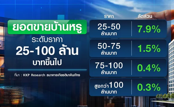 นอกจากนี้ อีกตลาดที่ถือว่ายังเติบโตได้ดี คือ “ตลาดบ้านหรู” โดยจากข้อมูล KKP Research หรือทีมวิเคราะห์จาก ธนาคารเกียรตินาคินภัทร ระบุว่า กระแสการพัฒนาโครงการบ้านหรูระดับราคา 25-100 ล้านบาท กำลังขยายตัวในปี 2568-2569 เมื่อผู้พัฒนาขนาดกลางและผู้เล่นรายใหม่จำนวนมาก หันเข้ามาลงสนาม