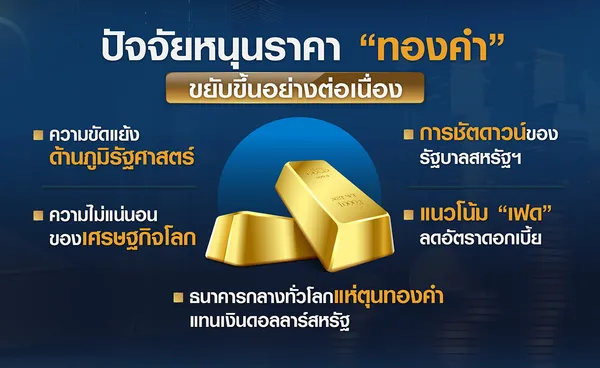 ประกอบกับการเข้าซื้อทองคำของธนาคารกลางประเทศต่าง ๆ การอ่อนค่าของดอลลาร์ การชัตดาวน์หรือการปิดทำการของหน่วยงานรัฐบาลกลางสหรัฐฯ ที่ล่วงเข้าสู่สัปดาห์ที่ 2 ทั้งนี้ ราคาทองคำเคยพุ่งขึ้นเกือบร้อยละ 4 ในช่วงที่ประธานาธิบดีทรัมป์ดำรงตำแหน่งสมัยแรก และเกิดภาวะชัตดาวน์นาน 35 วัน ขณะเดียวกันก็มาจากปัจจัยที่ตลาดคาดการณ์ว่า “เฟด” จะลดดอกเบี้ยเพิ่มเติมในการประชุมปลายเดือนนี้