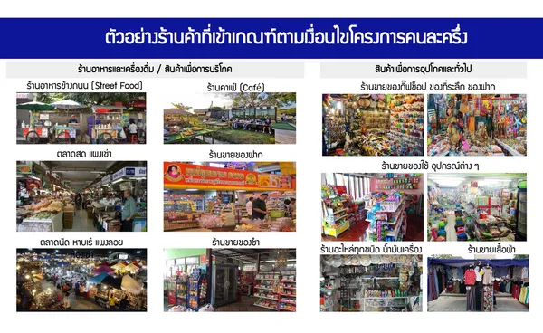 ทั้งนี้ ต้องไม่เป็นร้านค้าที่มีลักษณะเป็นร้านสะดวกซื้อที่เป็นธุรกิจแฟรนไชส์ และต้องมีการประกอบการที่สามารถตรวจสอบได้