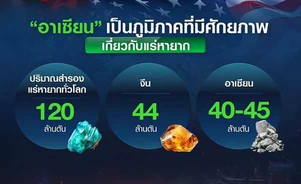 อย่างไรก็ตาม อาเซียนเป็นภูมิภาคที่มีศักยภาพเกี่ยวกับแร่หายาก ก่อนหน้านี้ สื่อมาเลเซีย อาทิ เบอร์นามา รายงานว่า อาเซียนน่าจะมีปริมาณสำรองแร่หายากรวมกันราว 40-45 ล้านตัน ซึ่งใกล้เคียงกับปริมาณสำรองของจีนที่ 44 ล้านตัน