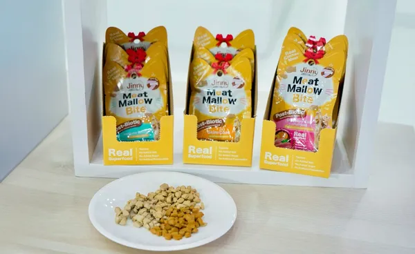 ไฮไลท์ผลิตภัณฑ์ใหม่ที่นำมาจัดแสดง ได้แก่ ‘เจอร์ไฮ ไทย เทสต์’ (JerHigh Thai Taste) ภายใต้แนวคิด “กลิ่นหอม รสชาติไทยแท้ สุนัขชอบ คนจำได้” สะท้อนเอกลักษณ์ความเป็นไทย มุ่งเจาะตลาดพรีเมียมในเอเชียและตะวันออกกลาง เตรียมเปิดตัวเชิงพาณิชย์ในไตรมาส 1 ปี 2569 และ ‘จินนี่ นูริช’ (Jinny Nourish) อาหารแมวเปียกเกรดซูเปอร์พรีเมียมแบบซองพัฒนาสูตรเฉพาะสำหรับแต่ละช่วงวัยของแมว โดยใช้ส่วนผสมจากปลาทูน่าธรรมชาติและเนื้อไก่สดคุณภาพสูง ปราศจากกลูเตนและข้าวสาลี ตอบสนองเทรนด์ “Functional Nutrition” โภชนาการเพื่อการดูแลสุขภาพเฉพาะด้านที่เติบโตอย่างรวดเร็วในตลาดโลก