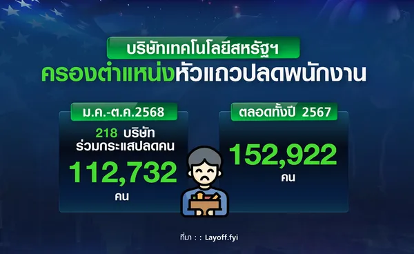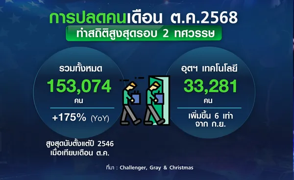 ข้อมูลจาก “ชาเลนเจอร์, เกรย์ แอนด์ คริสต์มาส” (Challenger, Gray & Christmas) ระบุว่า นับตั้งแต่เดือนมกราคม-ตุลาคมปีนี้ บริษัทในสหรัฐฯ ประกาศเลิกจ้างพนักงานไปแล้ว 1.1 ล้านตำแหน่ง เพิ่มขึ้นร้อยละ 65 เมื่อเทียบกับช่วงเดียวกันของปีที่แล้ว ซึ่งอยู่ที่ราว 665,000 ตำแหน่ง ถือเป็นปีที่มีการปลดคนมากที่สุดตั้งแต่วิกฤตโควิดในปี 2563 ซึ่งมีการปลดคนมากกว่า 2.3 ล้านตำแหน่ง และตัวเลขล่าสุดอยู่ในระดับใกล้เคียงกับการเลิกจ้างพนักงานครั้งใหญ่ในช่วงที่สหรัฐฯ เผชิญวิกฤตการเงินเมื่อปี 2551-2552