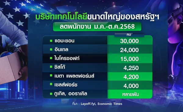 สำหรับสาเหตุที่นำไปสู่การเลิกจ้างในอุตสาหกรรมเทคโนโลยีมาจากเทคโนโลยีที่พัฒนาอย่างต่อเนื่อง โดยเฉพาะด้าน AI ประกอบกับเศรษฐกิจที่ชะลอตัวลงท่ามกลางความไม่แน่นอนจากมาตรการภาษี ทำให้หลายบริษัทต้องปรับลดต้นทุน รวมทั้งจัดสรรกำลังคนใหม่เพื่อให้รองรับการพัฒนาด้าน AI และคลาวด์คอมพิวติ้ง ที่กำลังมีความสำคัญมากขึ้นในขณะนี้