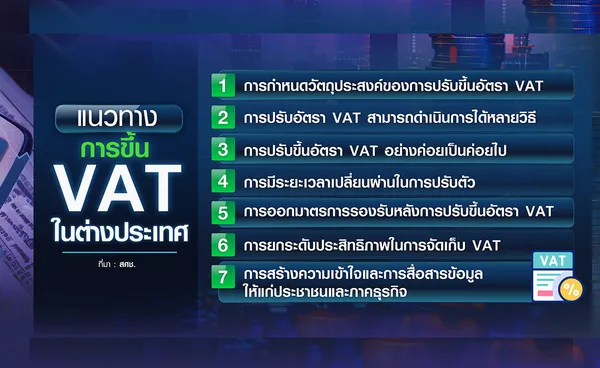 โดยจากการศึกษาฯสภาพัฒน์พบว่า บทเรียนจากการขึ้น VAT ในต่างประเทศมีประเด็นน่าสนใจ ดังนี้