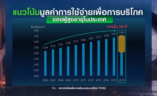 โดยข้อมูล จากสถาบันวิจัยเพื่อการพัฒนาประเทศไทย (TDRI) คาดว่า มูลค่าการใช้จ่ายของผู้สูงอายุจะเติบโตจาก 2.18 ล้านล้านบาท ในปี 2566 เป็น 3.50 ล้านล้านบาท ในปี 2576 โดยร้อยละ 67 เป็นมูลค่าเศรษฐกิจใหม่ที่เป็นโอกาสให้ภาคธุรกิจสามารถสร้างแบบจำลองธุรกิจใหม่ ( New Business Model) ที่สร้างรายได้ควบคู่กับการแก้ไขปัญหาผู้สูงอายุให้มีงานทำเพิ่มขึ้น โดยมีตัวอย่างธุรกิจในแต่ละด้านที่น่าสนใจดังนี้