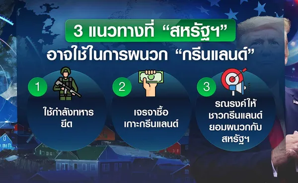 ขณะที่เข้าสู่ปี 2569 เพียงไม่กี่วัน ประธานาธิบดีทรัมป์ แห่งสหรัฐฯ และคณะทำงานกำลังหารือถึงทางเลือกต่าง ๆ ในการเข้าครอบครอง “กรีนแลนด์” ซึ่งรวมถึงการใช้กำลังทหาร เพราะนี่ถือเป็นเรื่องสำคัญลำดับต้น ๆ เกี่ยวกับความมั่นคงของสหรัฐฯ นักวิเคราะห์มองความเป็นไปได้ที่สหรัฐฯ จะผนวก “กรีนแลนด์” 3 แนวทางหลัก ๆ ได้แก่ 1.ใช้กำลังทหารบุกยึด แม้ว่าปฏิบัติการสายฟ้าแลบเพื่อยึด “กรีนแลนด์” สามารถทำได้ค่อนข้างง่าย เพราะไม่มีกองทัพเป็นของตนเอง และ “เดนมาร์ก” ที่รับผิดชอบด้านการป้องกันประเทศ กลับมีกองกำลังทางอากาศและทางทะเลจำกัด ไม่สามารถครอบคลุมพื้นที่ขนาดใหญ่อย่างกรีนแลนด์ แต่ผลกระทบจากการใช้กำลังทหารจะตามมาอย่างมหาศาล เนื่องจากจะกระทบต่อพันธมิตรในยุโรป และละเมิดกฎหมายระหว่างประเทศอย่างชัดเจน ซึ่งจะทำให้สภาคองเกรสสามารถเข้ามาจำกัดอำนาจในการทำสงครามของประธานาธิบดีที่ไม่ได้รับการอนุมัติจากสภาคองเกรส