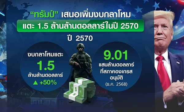 ขณะที่ประธานาธิบดีทรัมป์ได้เรียกร้องให้เพิ่มงบประมาณด้านกลาโหมของสหรัฐฯ อยู่ที่ 1.5 ล้านล้านดอลลาร์ ในปี 2570 ซึ่งเป็นช่วงเวลาที่ยากลำบากและอันตรายอย่างยิ่ง โดยงบประมาณดังกล่าวสูงกว่างบประมาณในปีนี้ มากกว่าร้อยละ 50 ซึ่งอยู่ที่ประมาณ 9.01 แสนล้านดอลลาร์ ที่เพิ่งได้รับการอนุมัติจากสภาคองเกรสเมื่อเดือนธันวาคมที่ผ่านมา ขณะที่นักเศรษฐศาสตร์เคยเตือนว่า ช่องว่างระหว่างรายจ่ายและรายได้ของสหรัฐฯ นั้นสูงเกินกว่าจะรับไหวแล้ว
